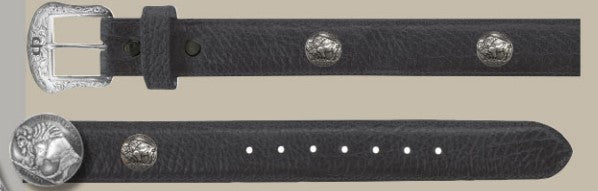 Genuine American Bison leather with bison concho repeat down strap. Features Stetson ® logo engraved buckle in silver finish and 7 point end holes for “better fit” across all body types.