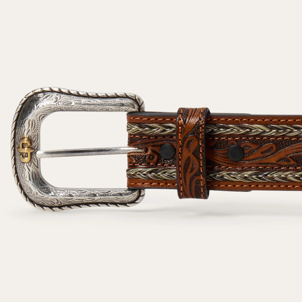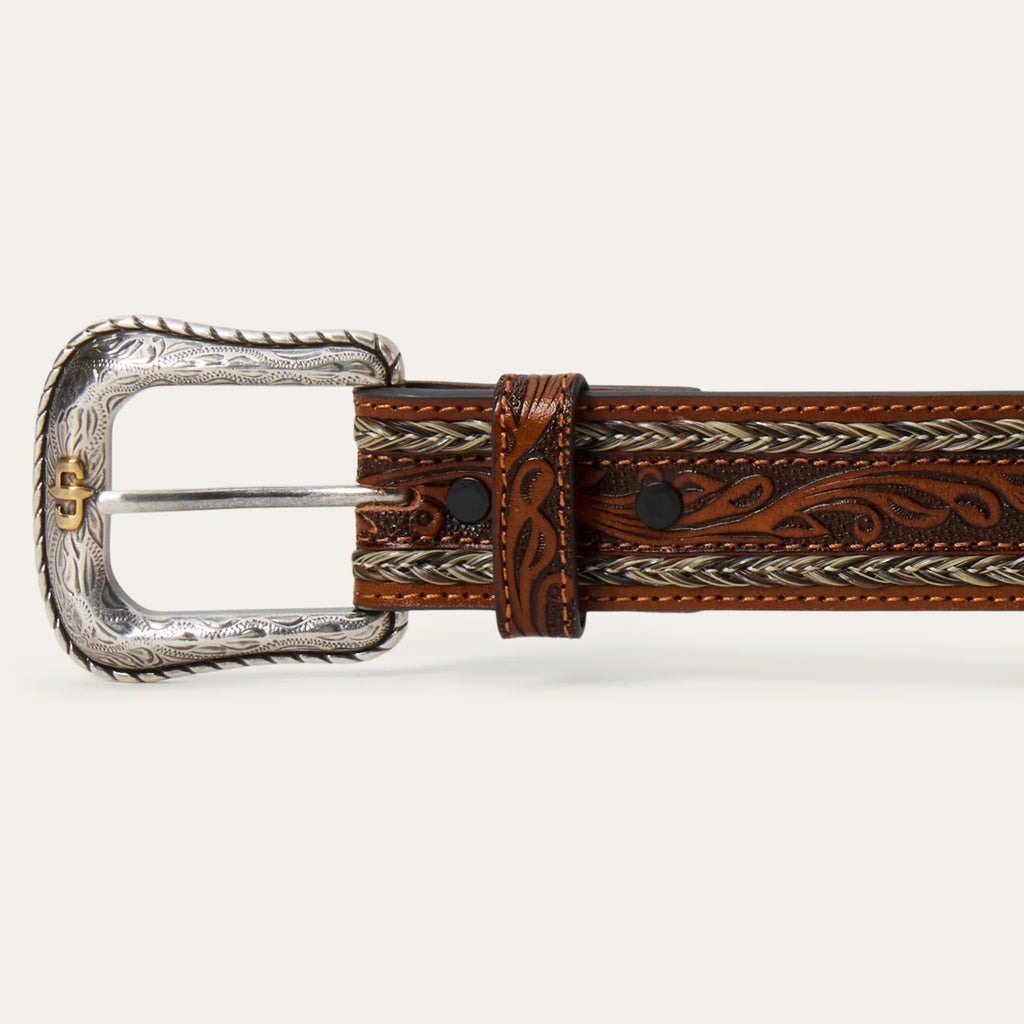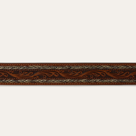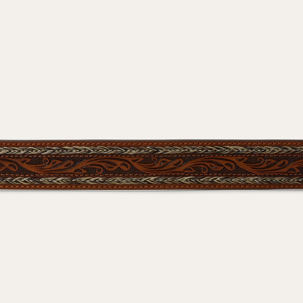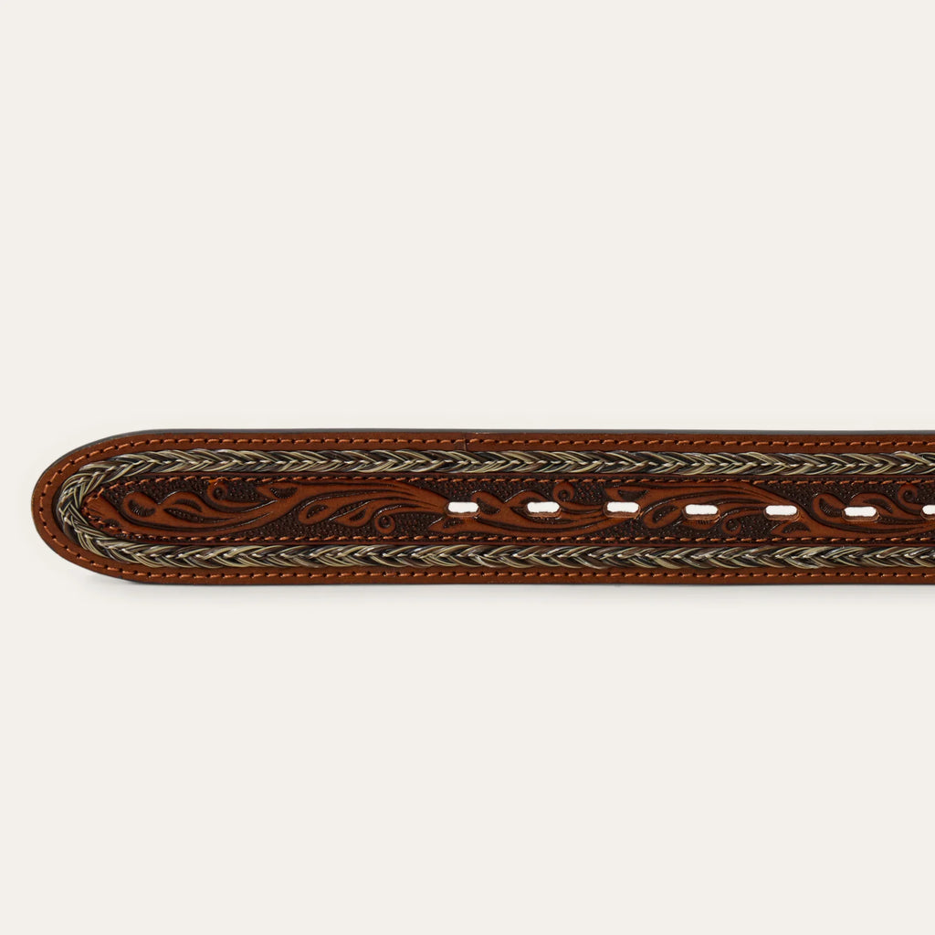 Made from top-grain leather, this belt has a 1 ½” wide leather strap with a tooled design and synthetic horse hair braided edges. It features seven holes on the point end to ensure a proper fit for all body types and is finished with a two-tone Stetson buckle. At once rugged and refined, each of our belts embodies our legendary commitment to quality and attention to detail.