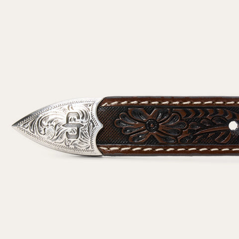 Stetson Men's Tooled Tapered Brown Sand Belt