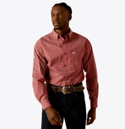 Ariat Men's Team Perl Fitted LS Red Beige Shirt