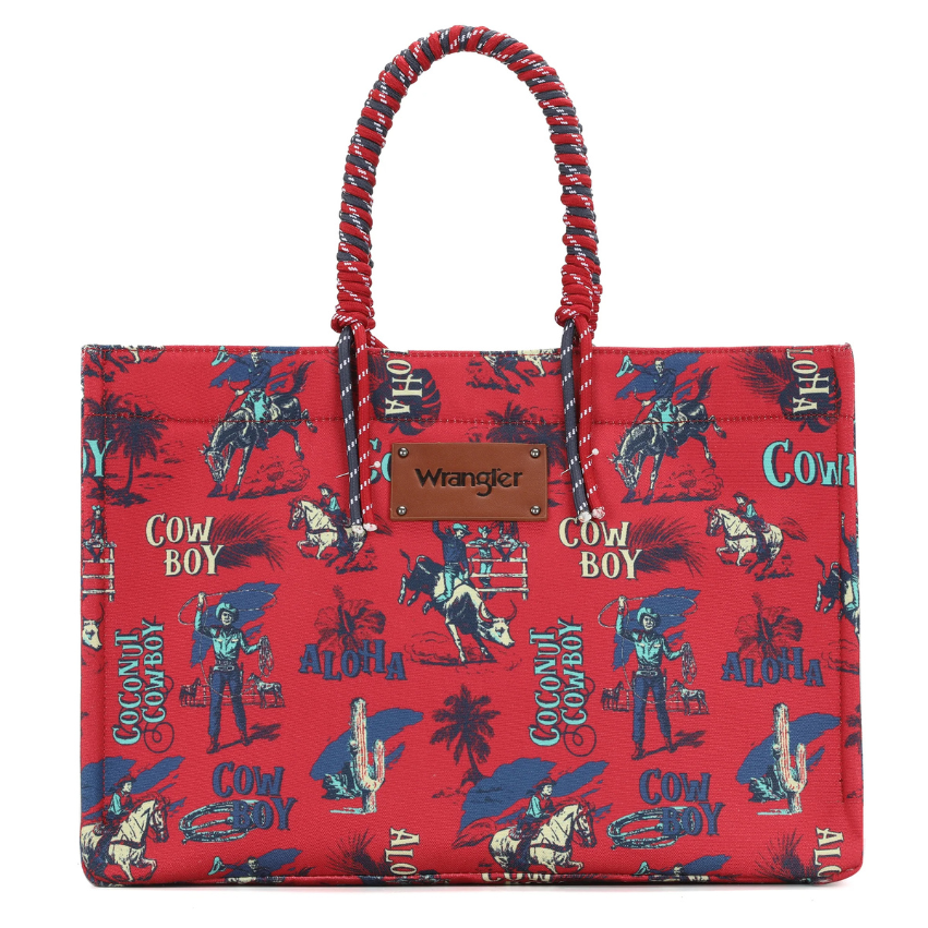 Wrangler COWBOY Dual Sided Print Canvas Wide Tote RED
