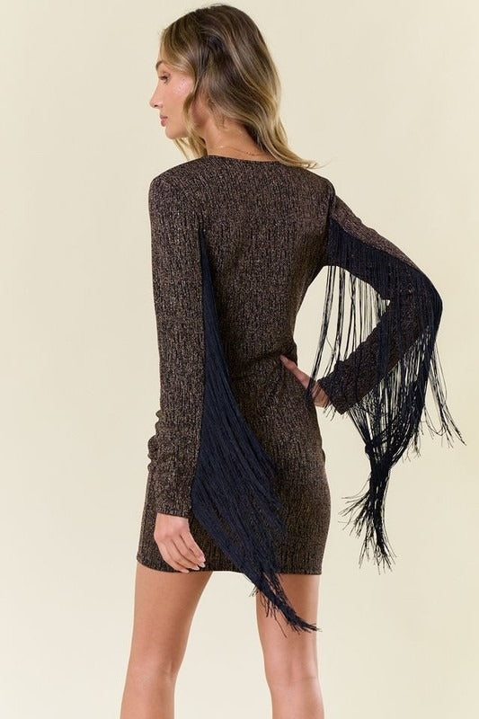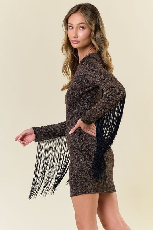 Saints & Hearts Women's Fringe Mocha Bodycon Dress